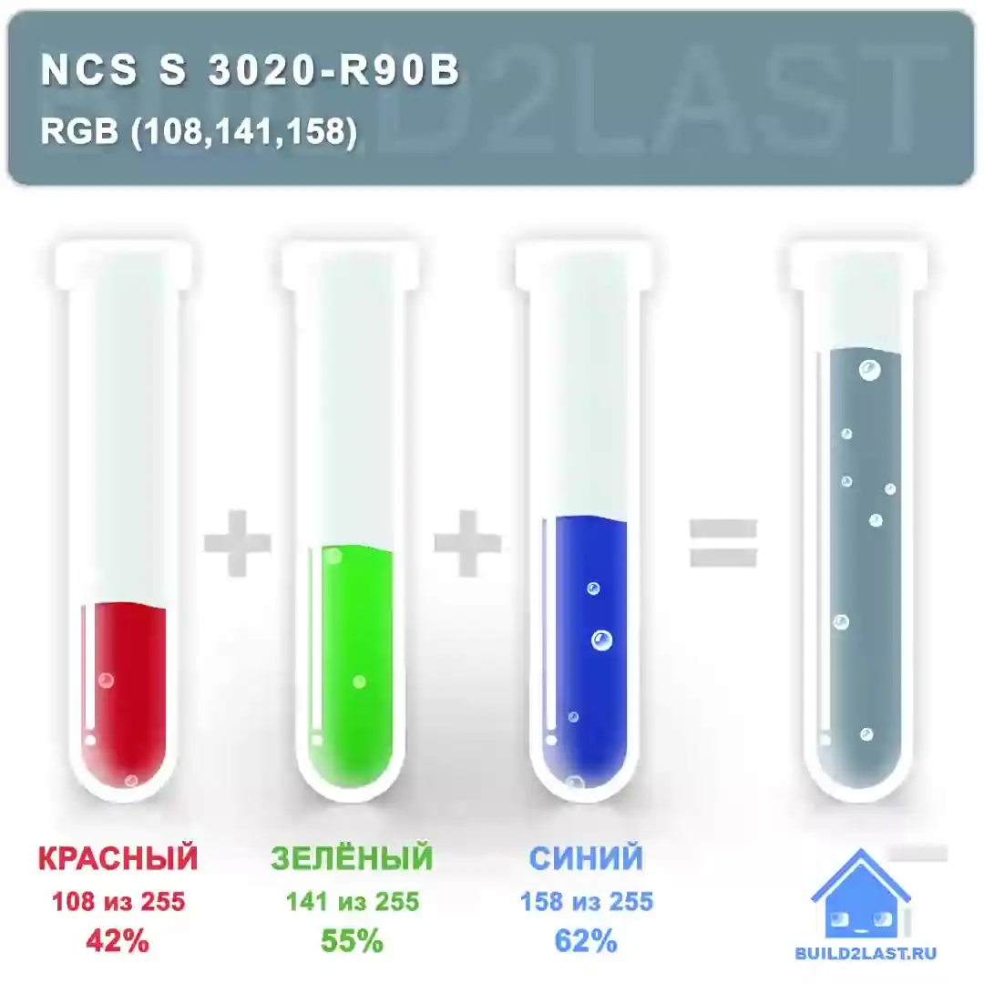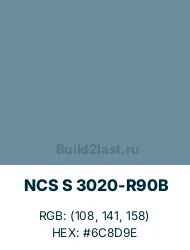 - NCS S 3020-R90B - это спокойный синий с серым подтоном.