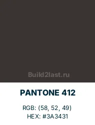 PANTONE 412 может показаться на первый взгляд просто темным, почти черным цветом, но его уникальная палитра выделяется благодаря теплым коричнево-серым оттенкам. Это не чистый черный, а мягкий, сложный оттенок, который одновременно кажется строгим и глубоким, но в то же время способен передавать тепло и комфорт. Его можно встретить в самых разных сферах, от моды и графического дизайна до промышленного и интерьерного оформления.
